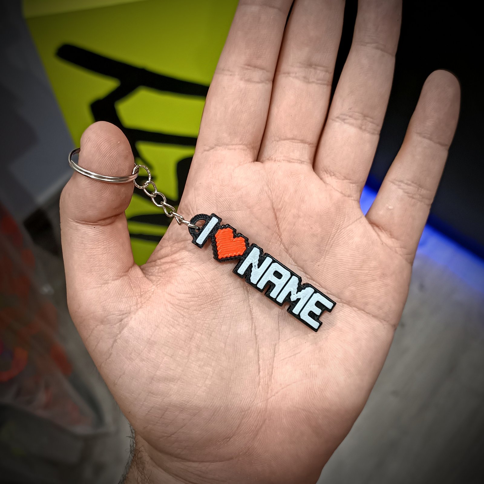🔑 Porte-clé personnalisé « I ❤️ NAME » – Impression 3D