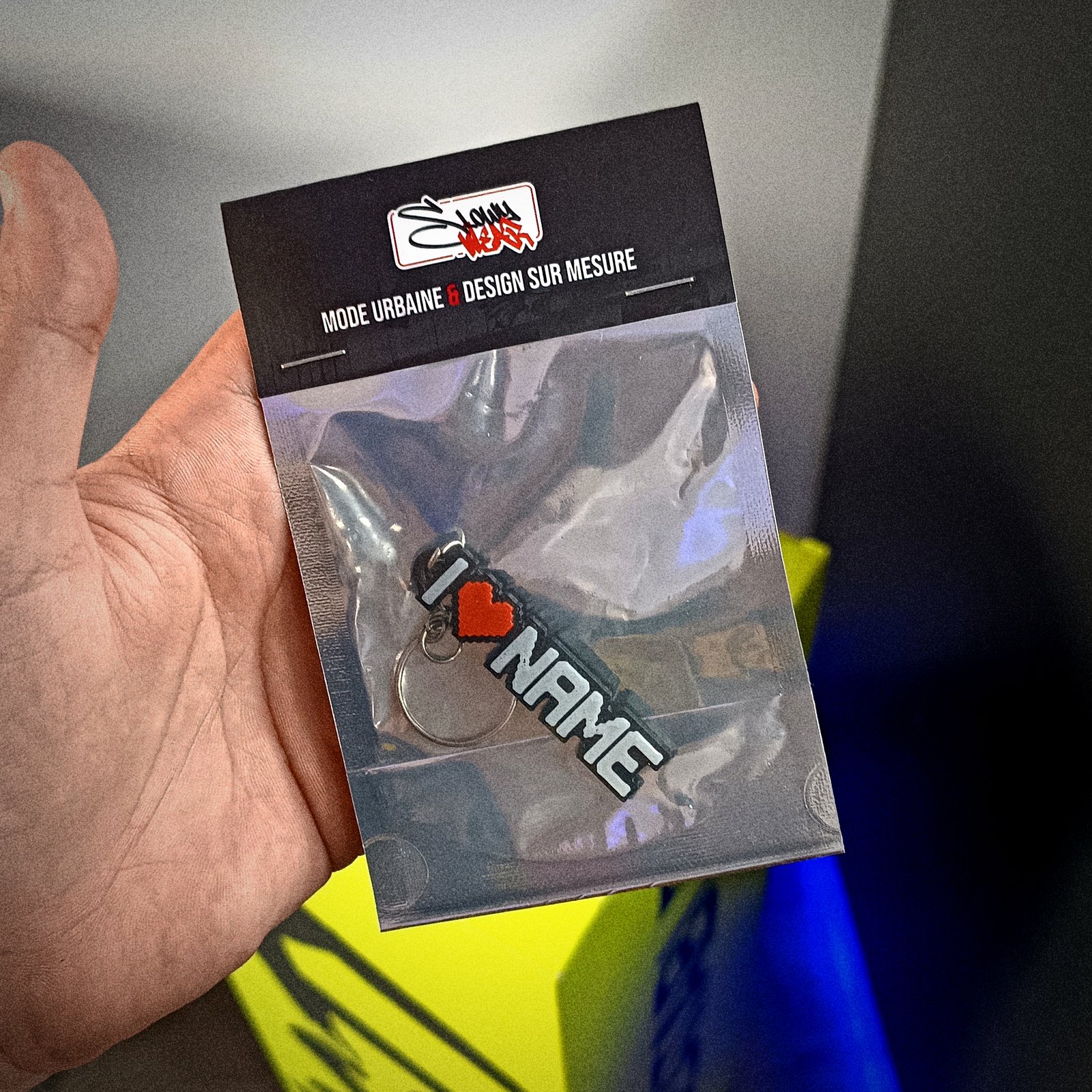 Porte-clé « I ❤️ [Ton Prénom] » 3D Personnalisé